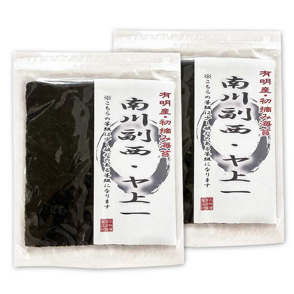 等級の「ヤ」は製造過程で生じた小穴や破れを指しますが、ベースは「上一」という上位ランク。有明海でも評価の高い南川副西(みなみかわそえにし)漁場の初摘みであり、味と香りの良さは正規品と全く変わりません。むしろ穴が開くほど柔らかい若芽である証拠です。口に入れた瞬間のとろけるような食感と、有明海特有の濃厚な旨味は、まさに一級品そのもの。ぜひ一度ご賞味ください。数量限定です。