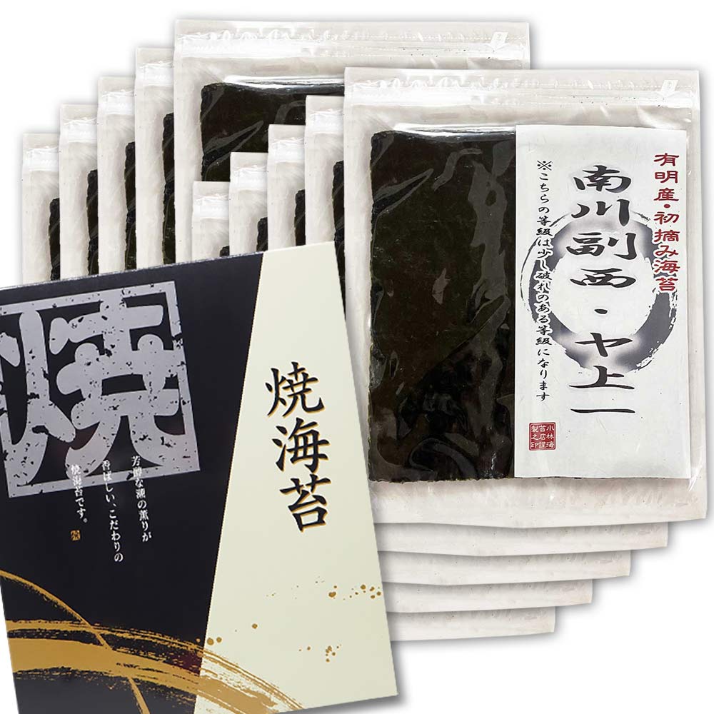 等級の「ヤ」は製造過程で生じた小穴や破れを指しますが、ベースは「上一」という上位ランク。有明海でも評価の高い南川副西(みなみかわそえにし)漁場の初摘みであり、味と香りの良さは正規品と全く変わりません。むしろ穴が開くほど柔らかい若芽である証拠です。口に入れた瞬間のとろけるような食感と、有明海特有の濃厚な旨味は、まさに一級品そのもの。ぜひ一度ご賞味ください。数量限定です。